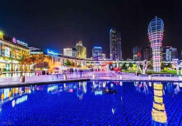 到了晚上,广场上灯光璀璨,热闹非凡,是宁波市民和游客休闲娱乐的好去处。