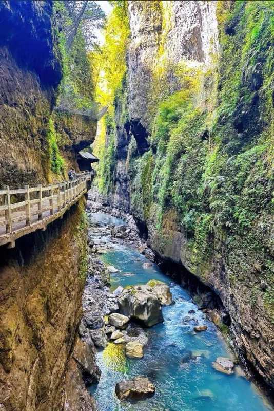 这里简直就是地球的"伤口"展览馆! 奇形怪状的山峰、长得随心所欲的石头、深不见底的峡谷、地下暗河、巨大的天坑、狭窄的地缝...你能想到的地貌这里几乎全有。 最出名的是"一炷香"一根细高细高的石柱子孤零零杵在那儿风吹雨打千万年愣是没倒看着都悬。 走在云龙河地缝的栈道上往下瞅一眼深不见底腿肚子直哆嗦。
