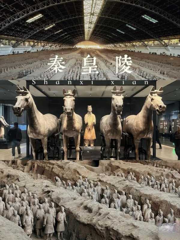 发现于1974年,三个陪葬坑总面积2.3万平方米,出土陶俑、陶马8000余件,兵器4万余件,被誉为"世界第八大奇迹"