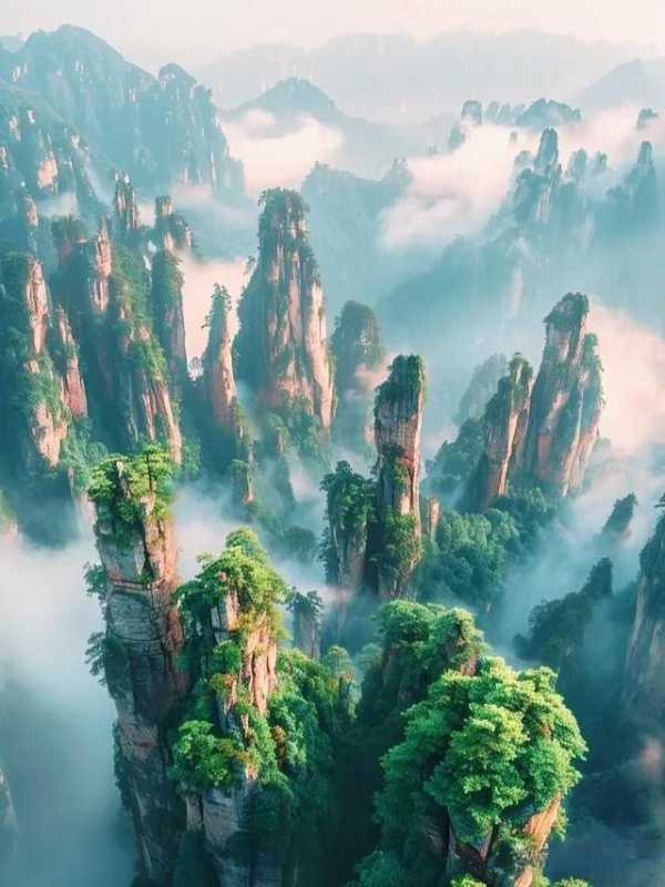 中国首个国家森林公园,面积4810公顷,拥有3000多座石英砂岩峰林,最高峰兔儿望月海拔1264米