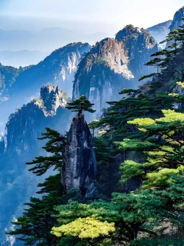 以"奇松、怪石、云海、温泉、冬雪"五绝著称,拥有命名山峰82座,最高峰莲花峰海拔1864.8米,年被联合国列入世界双遗产