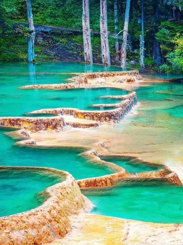 3️⃣ 九寨沟 | 上帝打翻的调色盘“九寨归来不看水”是真的!那水,蓝的、绿的、清的… 简直是人间仙境!随便一拍都是电脑桌面,美到失语!#九寨沟 #人间仙境