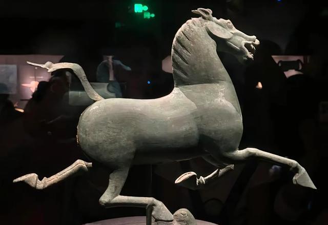 马踏飞燕的“飞鸟”其实是只龙雀,东汉设计师玩的是“重心漂移”:整匹马只靠一只雀爪子支撑,当年考古人员从雷台汉墓掏出它时,马脖子是歪的,修复师拿牙签一点点垫平,现在成了中国旅游标志,出差最多——复印件全国景点门口站岗,真迹在甘博躺着喝“灰”。
