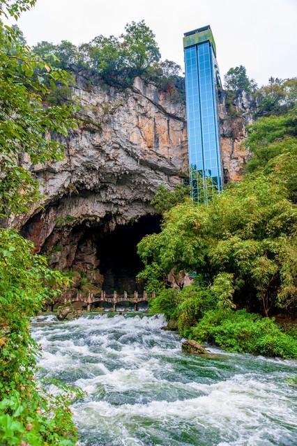 喀斯特溶洞、瀑布、暗河与田园“龙字田”同框;乘船入洞,钟乳石、石幔、地下瀑布构成地心幻境。