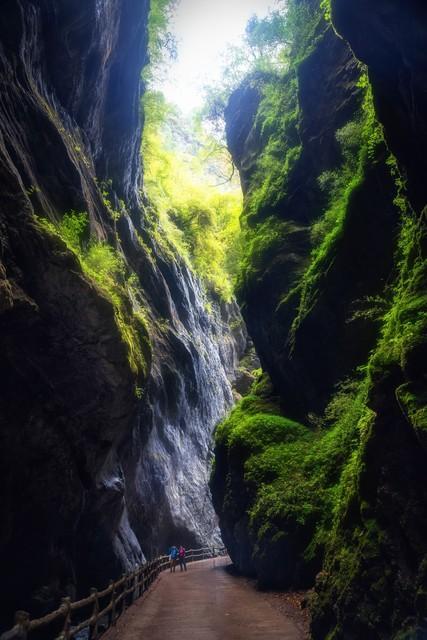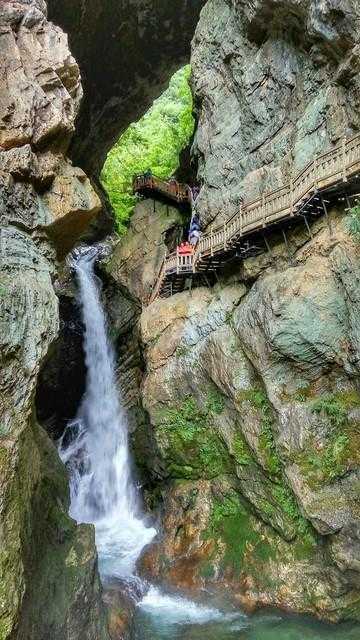 长江三峡腹地的高峡平湖;保留纤夫号子与木船漂流的古老传统,两岸峭壁如削,溪水澄澈见底。
