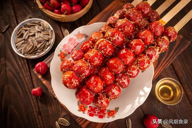以山楂等水果穿竹签蘸冰糖熬制,糖壳晶莹剔透如玻璃,入口脆甜,内里水果酸甜多汁文化: