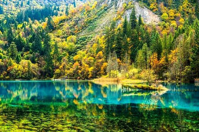 九寨沟的水更清了。重建时用了最先进的生态修复技术,现在水的能见度达到30米。建议10月中下旬去,彩林映着碧水,美得不像人间。