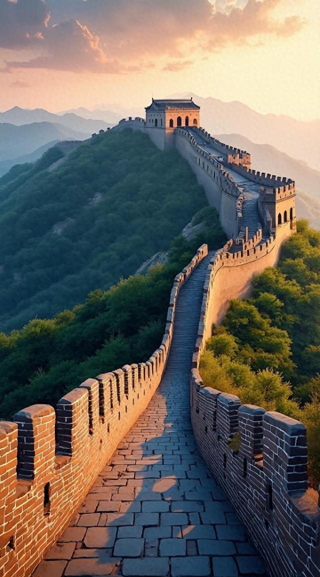 1. **长城**作为中华民族的象征,长城蜿蜒数千里,横贯北方山脉,雄伟壮观。登上长城,既能感受历史的沧桑,也能俯瞰广袤的自然风光,是追寻古代防御工程奇迹的绝佳去处。