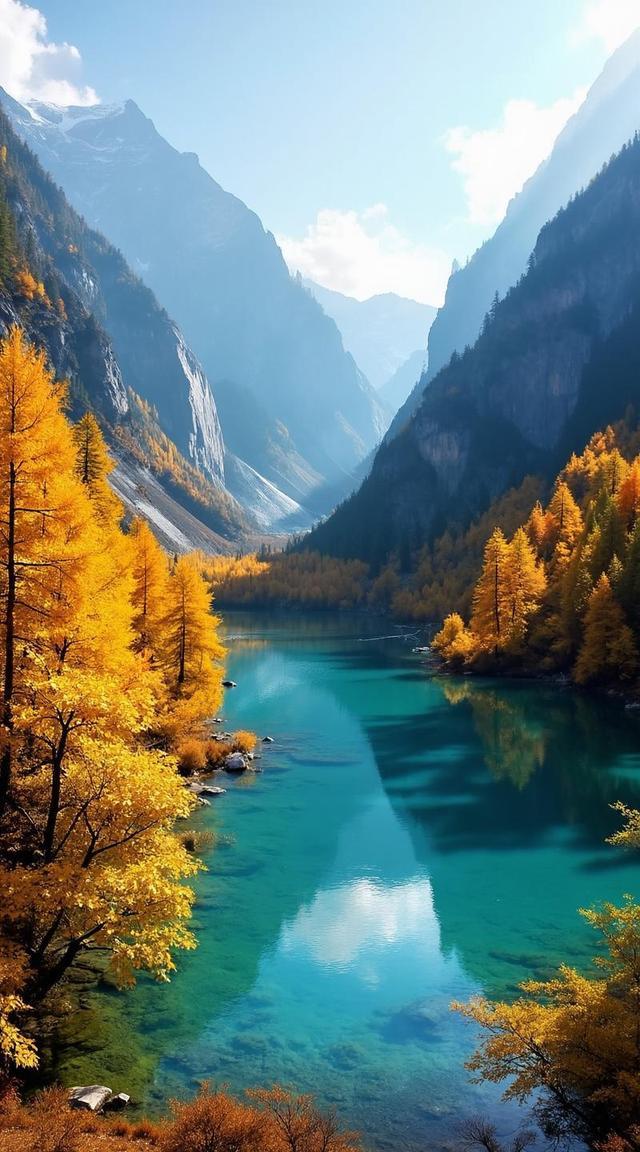 8. **九寨沟**九寨沟是四川省著名的自然保护区,以梦幻般的彩池、瀑布和原始森林闻名。这里四季景色各异,尤其秋季的彩林与碧水相映,宛如人间仙境。