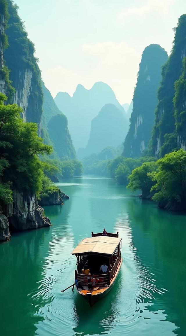 7. **桂林山水**桂林以其独特的喀斯特地貌和秀美的山水风光闻名,以“山青、水秀、洞奇、石美”著称。乘坐漓江游船,欣赏如诗如画的田园风光,是中国自然美景的代表。