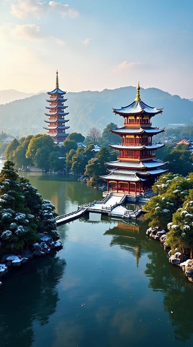 6. **西湖**杭州西湖以优美的湖光山色和丰富的人文历史而著称。漫步西湖边,欣赏断桥残雪、雷峰塔、三潭印月等经典景点,感受江南水乡的诗意韵味。