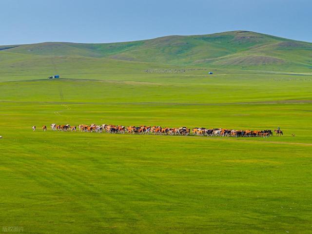 六月到九月草长得最好,白云像棉花,牛羊像卡在地上的点。