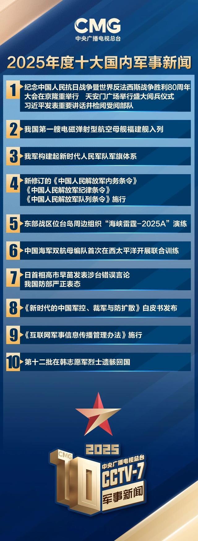 中央广播电视总台发布2025年度十大国内、十大国际军事新闻 中央广播电视总台发布2025年度十大国内军事新闻2025年度十大国际军事新闻责任编辑:刘立江 中国十大12-27