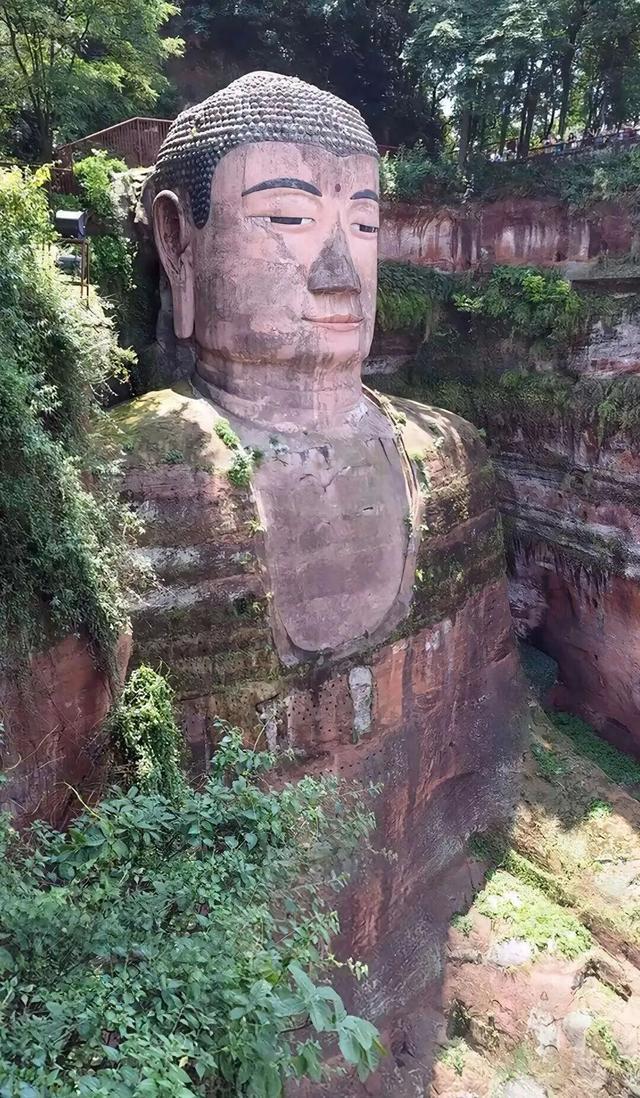 以前只觉得它大,真正站在佛脚边才感到“镇”字的分量。三江汇流的水就在脚下滚,声音闷雷似的。抬头看,佛的眼睛半睁着,你在他的视线下方,像一粒沙。有个船工在远处点了一根烟,烟雾飘上去,还没到佛的膝盖就散了。