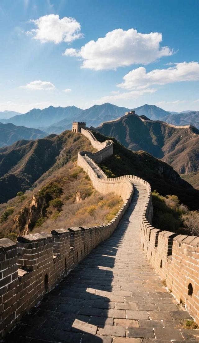 都说“不到长城非好汉”,我去了慕田峪,人少。砖石被磨得光滑,有的地方陡得得手脚并用。爬到高处回头看,长城在山脊上起起伏伏,真的像条龙。风特别大,吹得外套鼓起来。坐在敌楼里休息,墙缝里长出一棵小草,开着不知名的黄花。