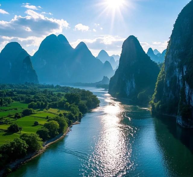 9. 桂林漓江:喀斯特地貌构成20元人民币背后的山水画卷。静音竹筏可静静欣赏“九马画山”,阳朔段还有新式田园咖啡馆休憩。