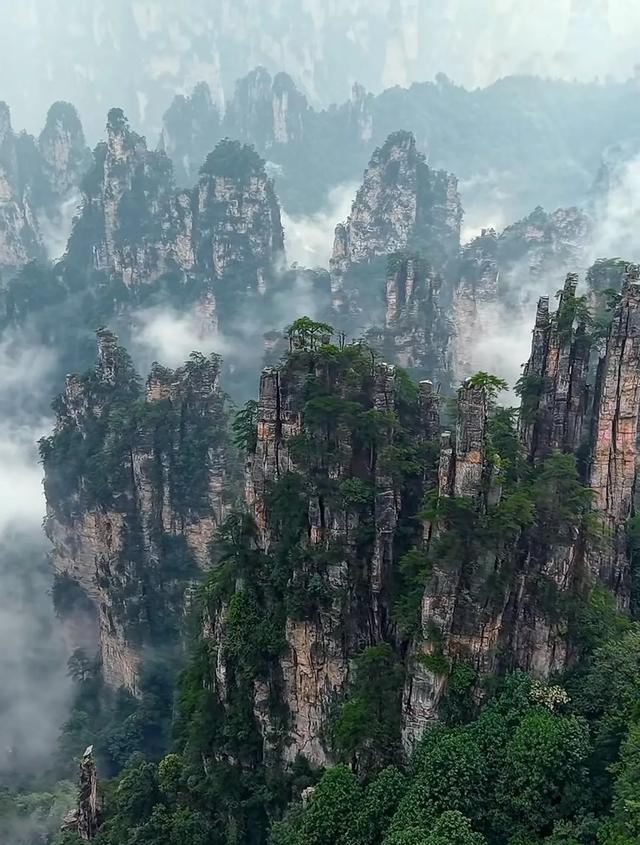5. 张家界国家森林公园:《阿凡达》悬浮山取景地,三千奇峰拔地而起。天门山99道弯盘山公路和玻璃栈道是勇敢者挑战。