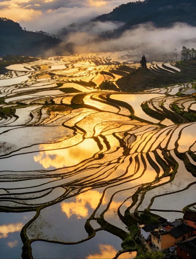 这是哈尼族人1300多年的农耕文化杰作。有着多依树梯田的日出、坝达梯田的日落、老虎嘴梯田、爱村蓝梯田。每每到了灌水期的梯田波光粼粼,日出和日落时可以说是绝美,让你感觉到美得安静又震撼,这里还有着最质朴的烟火气,来感受到农耕文明的伟大与温柔。每个观景台交通很便利。