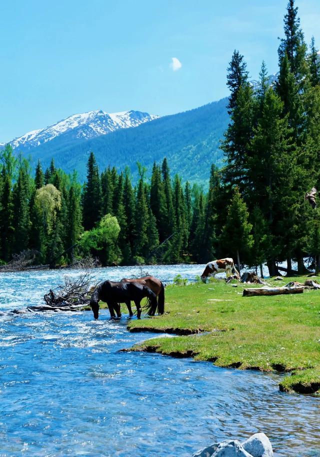 大西北最温柔的秘境,它融合了雪山、森林、草原和湖泊的极致风光,喀纳斯湖、观鱼台、三湾(卧龙湾、月亮湾、神仙湾)、禾木村。特别是秋季,漫山金黄的白桦林,湖水都跟着光线的颜色变化,有时候绿,有是蓝,还有炊烟的小木屋,慢悠悠的牛-羊群,就是一副仙境。