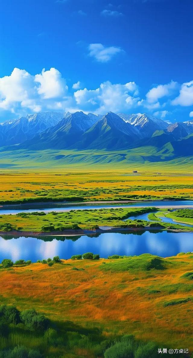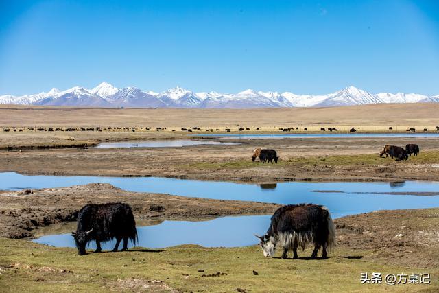 景色:清明时节,积雪初融,冰川、草原、湿地交织,藏羚羊、藏野驴在草原上奔跑,壮阔又纯净;