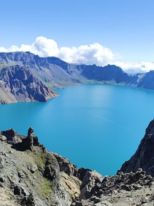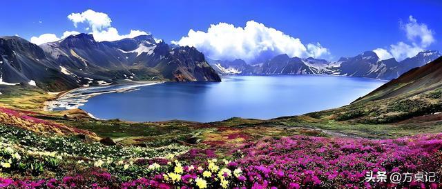 景色:春日里,积雪慢慢融化,天池露出真容,周围林海返青,还有温泉氤氲,景色纯净;