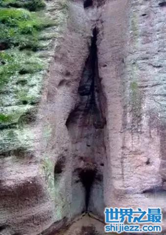 宣汉县百里峡风景区腹地,有一处着名景点叫羞女岩。羞女岩其实就是山峰中间的一个大裂缝,这个裂缝就形成了一个岩洞,和女阴相比,既是形似,更是神似。