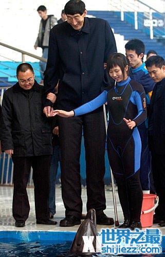 河南濮阳人,身高2.46米,体重124公斤,腿长1.57米长,超过姚明20厘米的优势(姚明身高2.26米)。