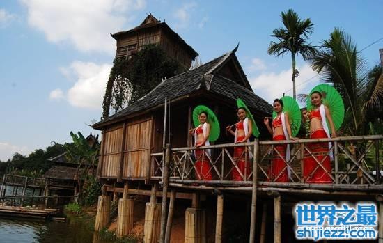 在西双版纳有许多所谓的民俗风情村。比如西双版纳原始森林公园,就有一个爱伲部落。游客进入村寨以后,打扮得花枝招展的少女将游人热情地迎进二层竹楼,参观其民居。一名女子稍作介绍,一摆手,进来好几位女孩,不由分说把一个小葫芦样的幸运符戴到男士的脖子上,然后让你一起参加所谓的抢亲游戏。“婚礼”的一个重头戏,是“送入洞房”。不要以为洞房里真有那好事,可怜的、无辜的“新郎”都在那乖乖交钱呢。进了洞房,女孩就伸手向你要做嫁妆的钱。