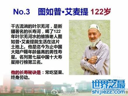 第一名:萨迪克•萨伍提, 122岁,男,新疆,维吾尔族