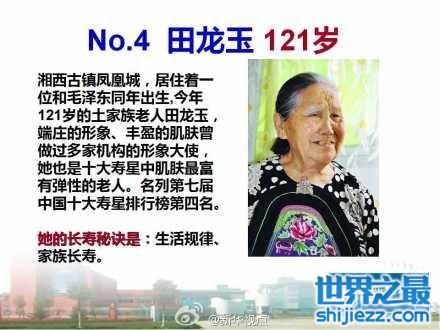 第四名:田龙玉, 120岁,女,湖南,土家族;