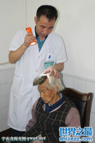 四川一位87岁老人头上长出一个长约13厘米、呈锥形的“独角”,当地医院检查称:这个“独角”应该是皮角,但也不排除有肿瘤的可能。据老人儿子王朝俊介绍:七八年前,梁秀贞老人的头上只是长了一颗“黑痣”。“当时我母亲一直喊发痒,我们就用了些土办法给她止痒。”