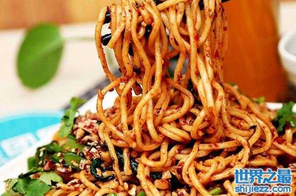 四川最有名的莫过于担担面了,是成都最具代表性的美食之一。担担面在全国很多地区都十分流行,用面粉擀制成面条,煮熟,舀上炒制的猪肉末而成。面条细薄,卤汁酥香,吃起来咸鲜微辣,香气扑鼻,十分入味,深受人们喜爱。