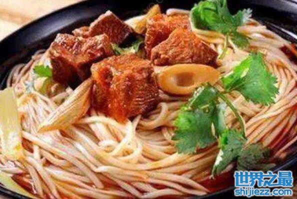 内江牛肉面起源于四川内江,是四川很多地方都很流行的特色面食。其做法精细,用料讲究,面条吃起来口感细滑,汤汁是将优质猪骨使用文火熬制数小时而成的,味道十分鲜美可口。