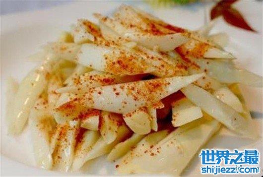 传说杭州广元寺附近有一个竹林。僧侣喜欢竹笋,但他们不擅长烹饪。苏东坡在杭州当和尚时,和寺里的僧侣有过接触,所以他教他们吃竹笋的经文。这道菜是用嫩竹笋和香粮炒、炖制成的。竹笋香气浓郁,味道鲜美,独具特色,世代相传,成为杭州特色菜。