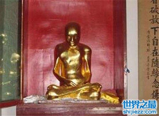 从1946年开始,他一直生活在湖南参禅悟道里。1997年去世,他的尸体被放在棺材里,也没有进行防腐,之后就一直放在塔里。今年之后打开棺材,发现他的全身完好无损,皮肤像活人一样富有弹性,人们都说他是肉身菩萨。
