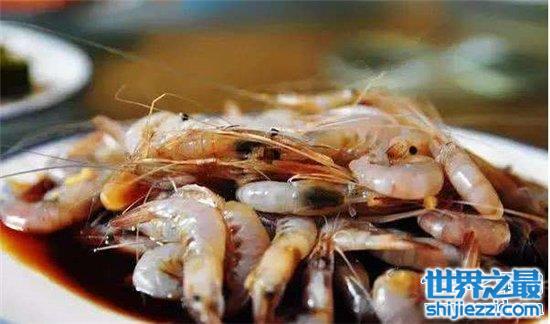 醉虾就是把鲜活的虾放入酒中,过一会虾就死了,不知道是因为酒太烈还是虾醉死了。当虾彻底死亡的时候,人们就会开始品尝这道菜,海鲜和酒香在口中一起迸发,既美味又残忍。其残忍程度在禁菜中算是最低的。