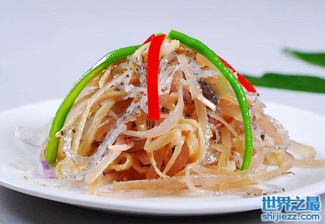 三皮丝是陕西西安的一道特色传统名菜,所谓三皮丝是指鸡皮、猪皮和海蜇皮,经过热油凉拌而成的一道凉菜,吃起来鲜嫩脆口,在西安当地是一道很受欢迎的下酒菜。