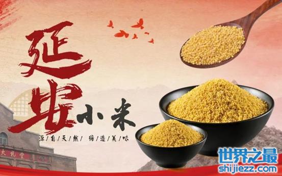 延安小米亦称粟,延安地区光热资源充足,昼夜温差大,养分积累多,因而盛产谷子,成熟后稍加工,即成黄灿灿、香喷喷的小米。延安小米色泽金黄、颗粒浑圆、晶莹明亮、粘糯芳香,其蛋白质含量高,还富含多种维生素,可蒸、可煮,熬成粥,黄香柔滑、粘糊性强、回味悠长,喝之满口泛香,可滋阴补虚。