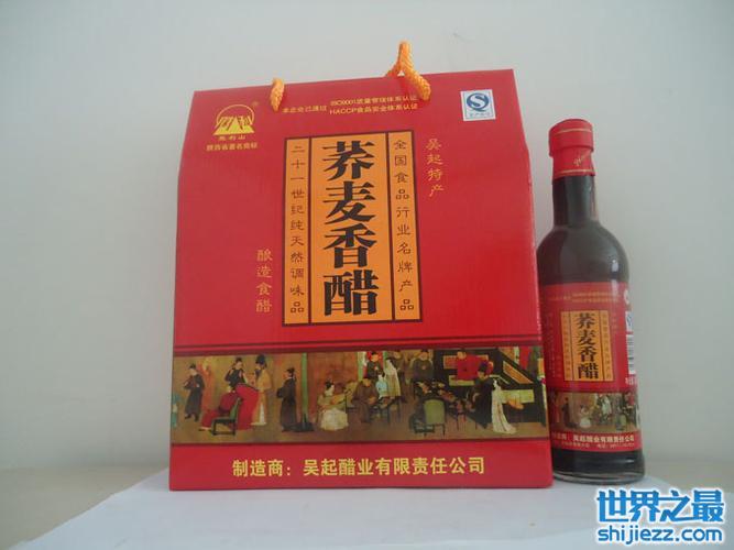 养麦香醋已有二千年历史,是以陕西省吴起县特产的优质荞麦为原料,采用科学的方法制成,其色泽棕褐鲜亮,醋香浓郁纯净,醋味醇厚微甜,体态浓稠适当,风味独特。