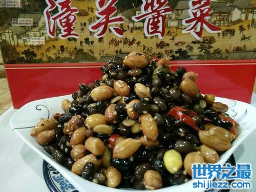潼关酱菜是陕西渭南的传统名菜之一,有着悠久的历史,起源于唐朝。潼关酱菜的制作过程非常考究,也非常精细所制作出来的酱菜含有丰富的蛋白质、氨基酸等多种营养成分,促进食欲、开胃的功能,吃起来酥脆鲜嫩、酱香扑鼻。潼关酱菜有很多品种,有八宝酱菜、萝卜酱菜、连皮酱笋等品种。