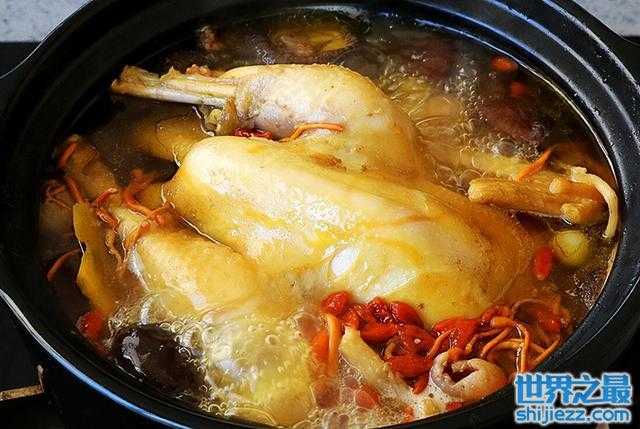 三层套鸡是长沙传统名菜,早年这道菜只有上流人士才能享用,普通人家根本吃不到。所谓三层套鸡,是将一只鸽子装进一只童子鸡里,然后再将童子鸡装进一只母鸡肚子里,放在一个大砂锅里,加入原汤和香料一起先用大火煮1个小时,然后再用小火焖2个小时,美味即成。