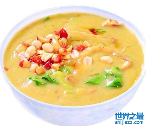 豆沫,在《史记》中就有记载,距今已有数千年的历史,被誉为“小吃中的活化石”。做成后的豆沫外观呈半透明的乳黄色,醇厚的小米香,伴着豆香、芝麻香、花生香、蔬菜的清香,浓郁得扑鼻;糊浓稠细腻,配菜香脆嫩滑、回味绵长、满嘴留香。