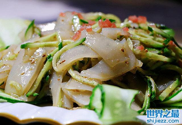 粉皮很多地方都有,有凉拌吃的,也有煮着吃的,亳州的粉皮是用大米、红薯淀粉、绿豆淀粉、马铃薯淀粉等混合调成糊状,然后经过热水筛糊得以沉淀而成。粉皮在亳州既可以在饭店的餐桌上见到,也能够在路边摊里见到,既可以做菜也可以当小吃,是很受欢迎的一道美味。