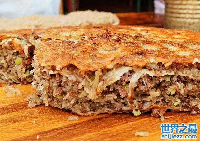 展沟烧饼是安徽省亳州市的特色名小吃,外形看起来有点像鞋底,所以很多人也称鞋底烧饼。展沟烧饼是用面粉、猪油、五花肉和葱姜蒜等调料一起先制成饼胚,然后放在壁炉里烤制而成的,吃起来香酥可口。
