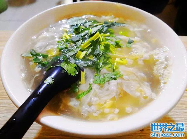 撒汤是亳州市利辛县的传统名吃,是一种以牛羊肉、鸡肉为原料,配上葱姜、辣椒、胡椒等调料一起熬制而成的。撒汤在有些地方也叫肉粥,也有人叫胡辣汤,不过真正的胡辣汤和撒汤还是有区别的。撒汤比胡辣汤更稠一点,喝起来胡椒味比较重,一口下肚浑身暖暖的。