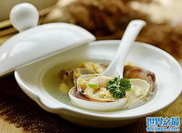 汆西施舌是将西施舌肉洗净放入汤碗,再用净勺将清汤、精盐、料酒去浮沫,倒入汤碗中,撒上香菜并淋上鸡油即成。