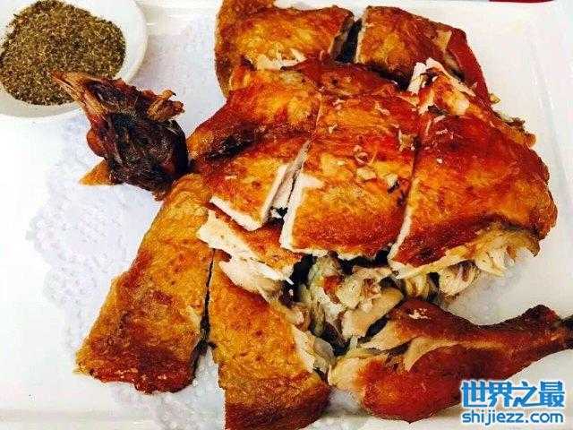 腊杆子烧鸡的历史悠久、配料精细华贵,用料中添配人参、豆蔻、桂皮等多种中药,皮滑肉爽,香而不腻,风味独特。