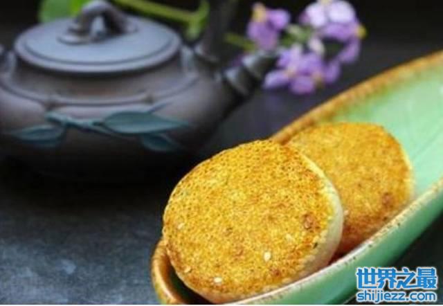 大畈麻饼是湖北咸宁通山县大板镇的地方特产,这种麻饼看着金黄香脆,表面覆盖有一层密密麻麻的芝麻,一口咬下去,芝麻浓香四溢,皮薄馅足,里边还有各色的果仁、陈皮、冰糖等食材,口感酥脆,甜而不腻,吃完满口留香。