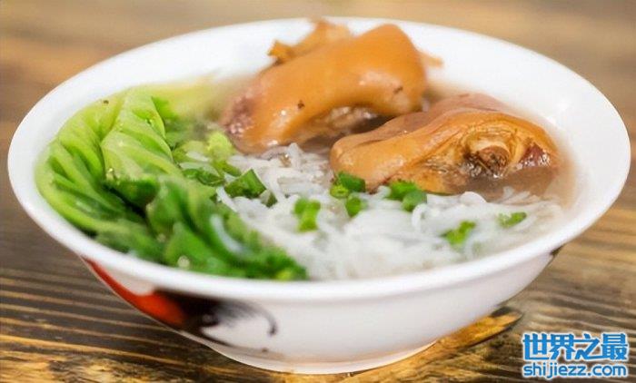 河源猪脚粉是广东河源人的一道经典早餐美食,在当地有句俗语是这样说的:“闻到猪脚粉,神仙也打滚”,走在河源的大街小巷你基本上都能吃到它。一碗正宗的河源猪脚粉是这样的,猪脚吃着爽口不腻,皮弹肉嫩,耐嚼有韧劲,汤汁浓而鲜美,里边的米粉清香爽滑,久泡不烂,细而不断,能吃到原有的米香味。