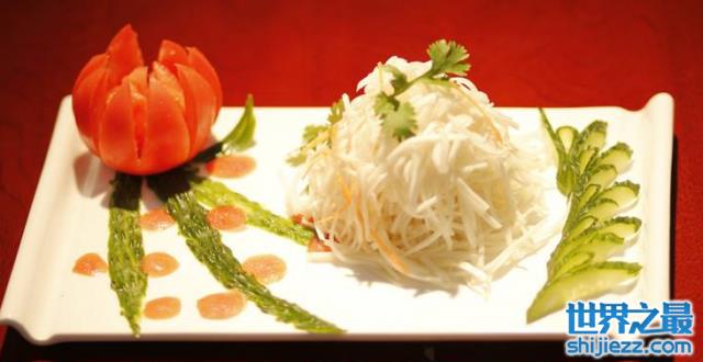 潍县辣皮是逢年过节、婚宴等宴席上的必备菜,成品五彩缤纷,酸辣可口,红绿调配的颜色,清冽爽口的味道,让食客赞不绝口。